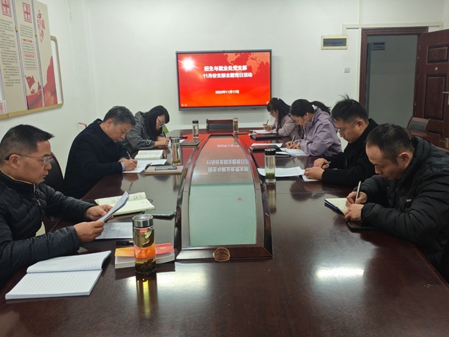 2025年11月17日上午9:30,招生与就业处党支部围绕“深入学习贯彻党的二十届四中全会精神 凝心聚力推动学校事业高质量发展”主题,在逸夫楼F116会议室召开11月份主题党日活动,会议由支部书记郝进仕主持。