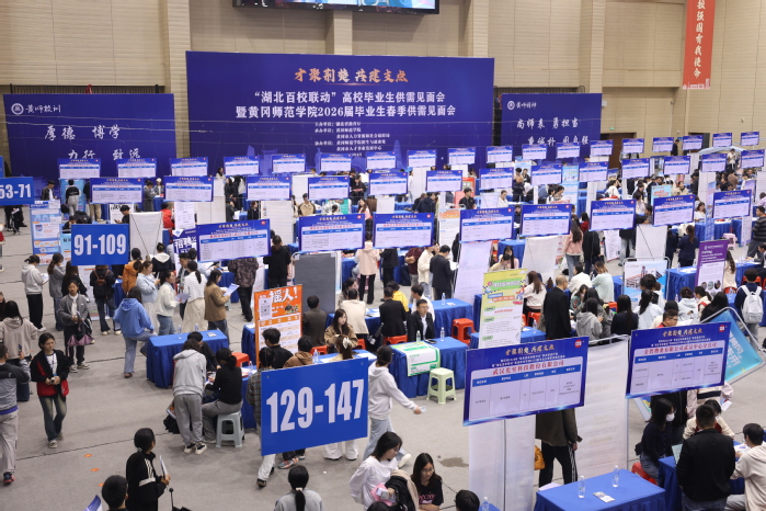 4月9日,由湖北省教育厅主办、黄冈师范学院承办的“湖北百校联动”2026届高校毕业生春季供需见面会在学校南区体育运动中心圆满举办。校党委副书记、校长漆昌柱,副校长马志斌出席活动。